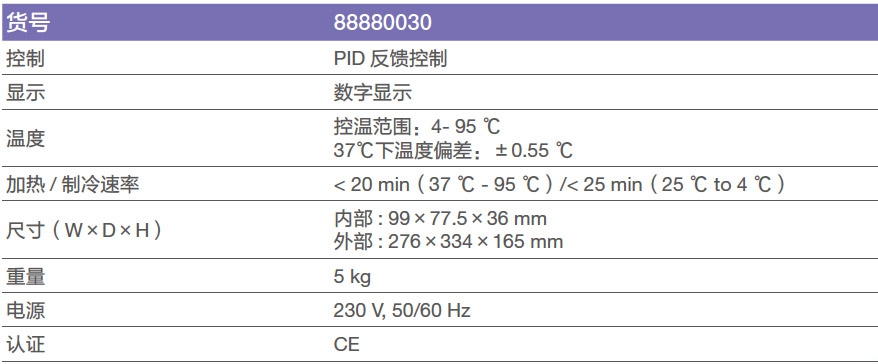 ● 内置温度探头,PID 控制器,精确控温,保证卓越的温度精度